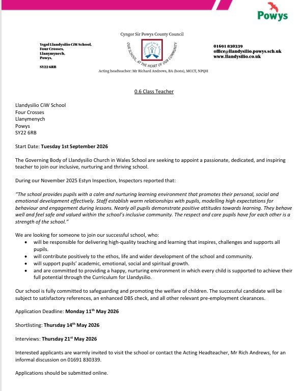 We are Llandysilio CiW School.